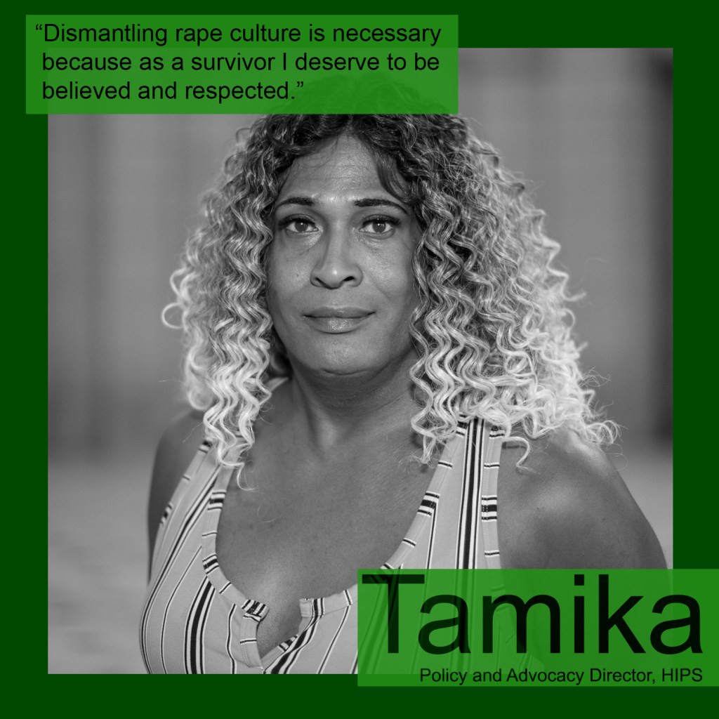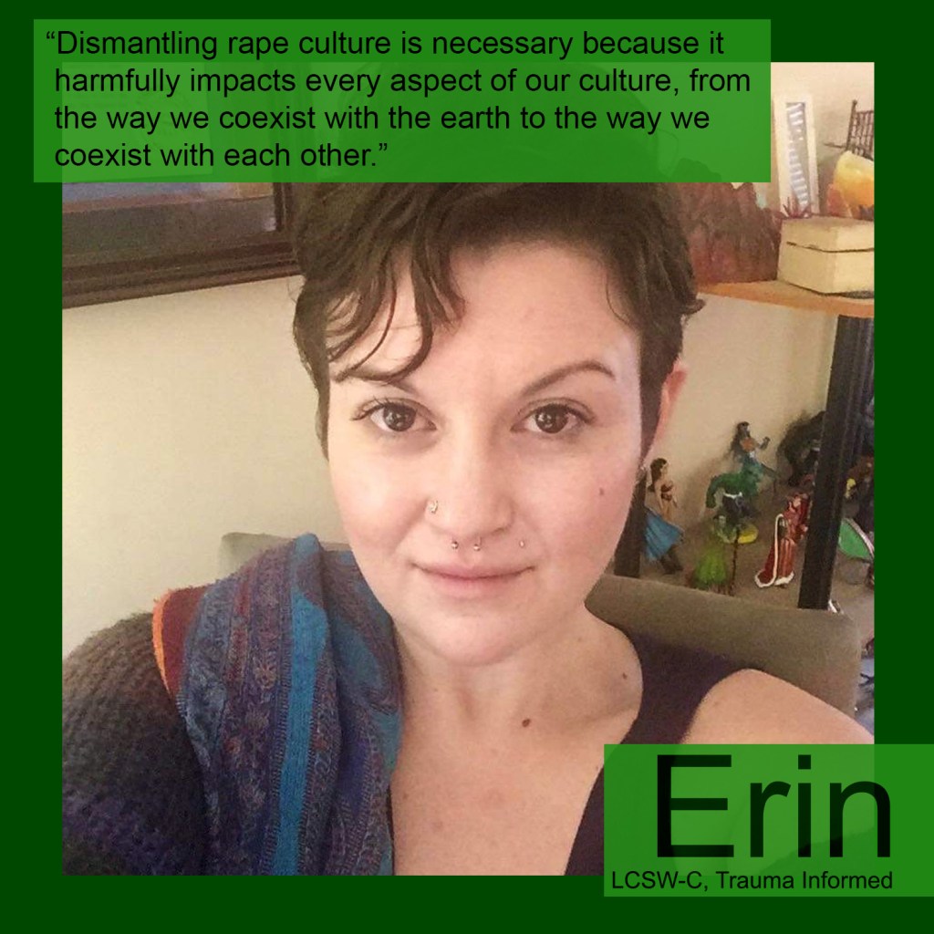 “Dismantling rape culture is necessary because everyone deserves safety, serenity, and a healthier relationship with intimacy, our bodies, and ourselves. Rape culture harms everyone by perpetuating trauma, re-enforcing harmfully rigid gender roles and norms, and getting in the way of our ability to express our fullest selves to each other.”